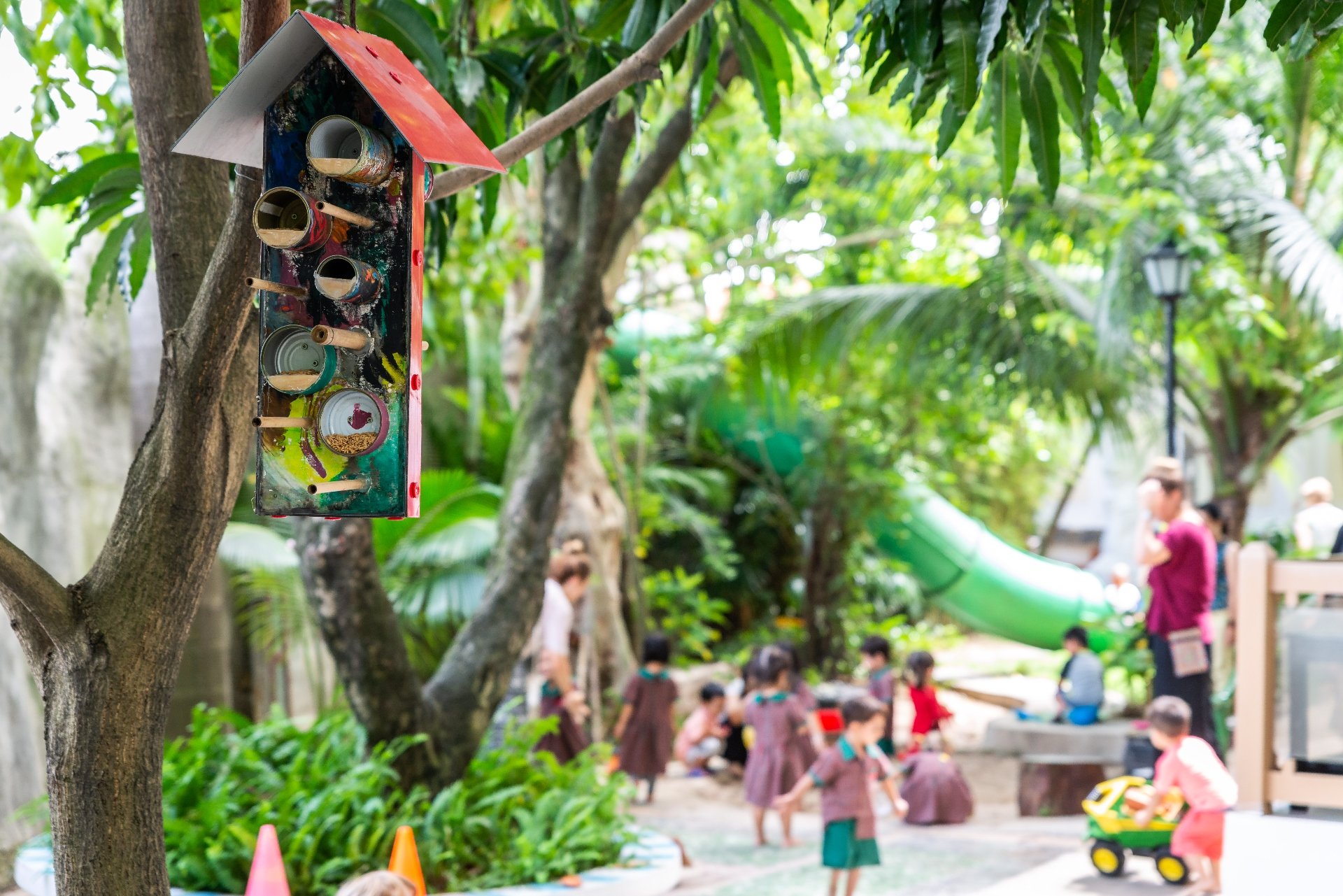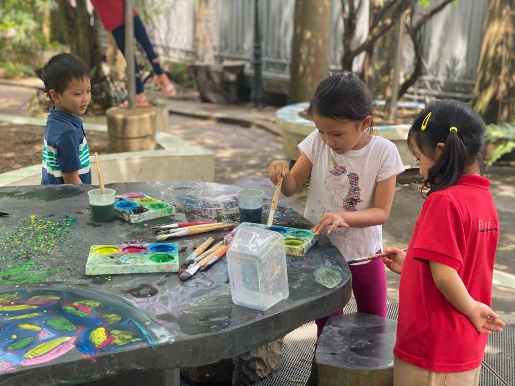Trẻ được khuyến khích kết nối với môi trường tự nhiên và bắt đầu học hỏi và hiểu biết về thế giới xung quanh. Khi trẻ hoạt động ở ngoài trời, trẻ được khuyến khích tương tác với cây cối, nước, cát, khu vườn chung của toàn trường, xe đạp và nhiều điều khác nữa.